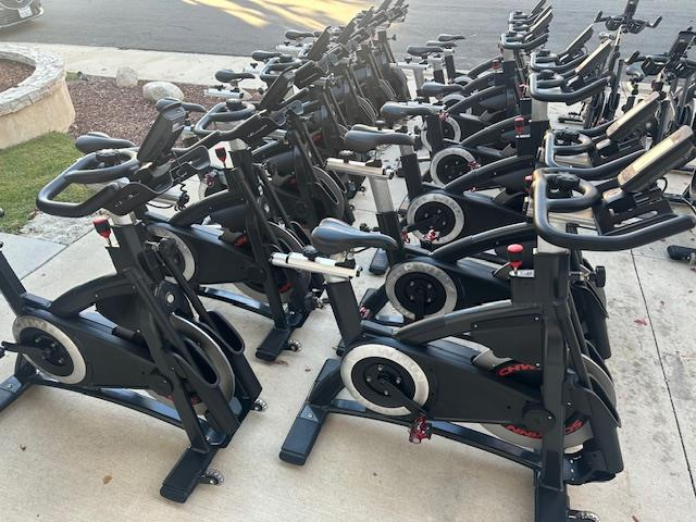 This exercise bike has two wheels on the back. You just have to pick it up by the front and can move it like a wheelbarrow.