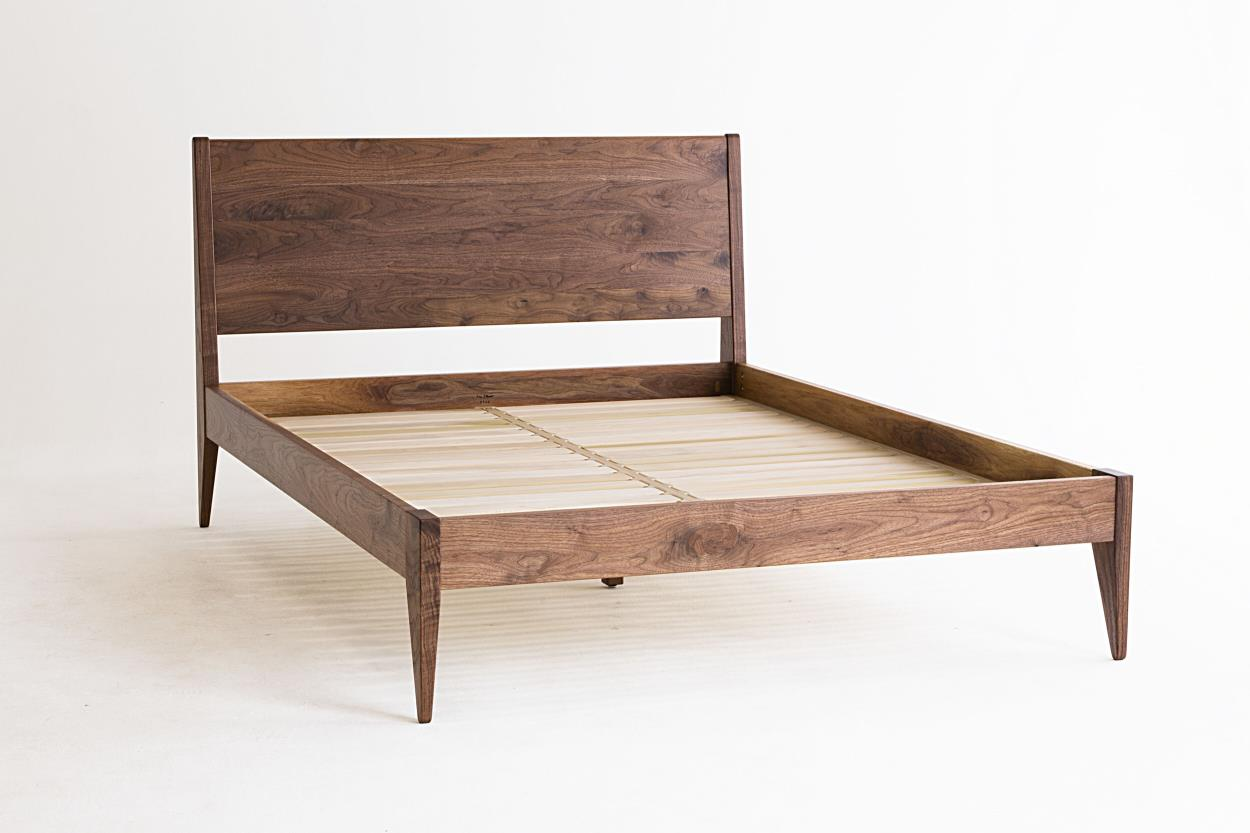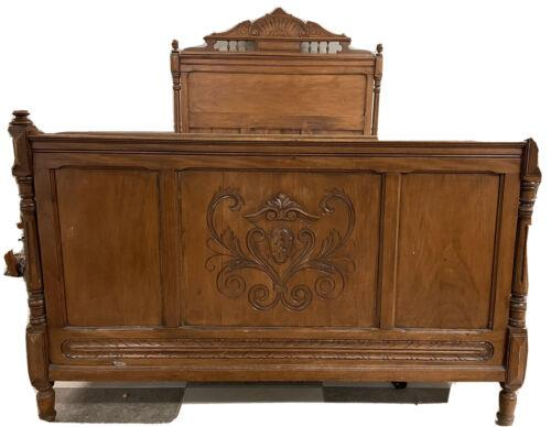 This bed is dis-assembled. It is a solid wood bed with a headboard, footboard, side rails and slats.