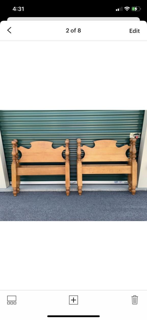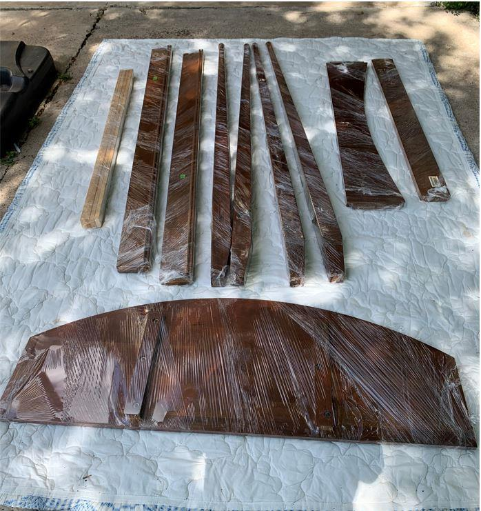 Broken down bed frame and bed hutch. All blanket wrapped and ready to ship. The bed will take almost no room if pinned against a side wall with the hutch against it.