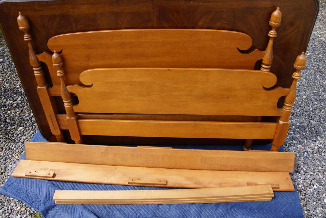 The queen bed frame has been disassembled already and is currently stored in the garage. The head board, end board, 2x side rails and bed slats are all together. All parts of the frame will need to be wrapped in a blanket to prevent scratching and damage.