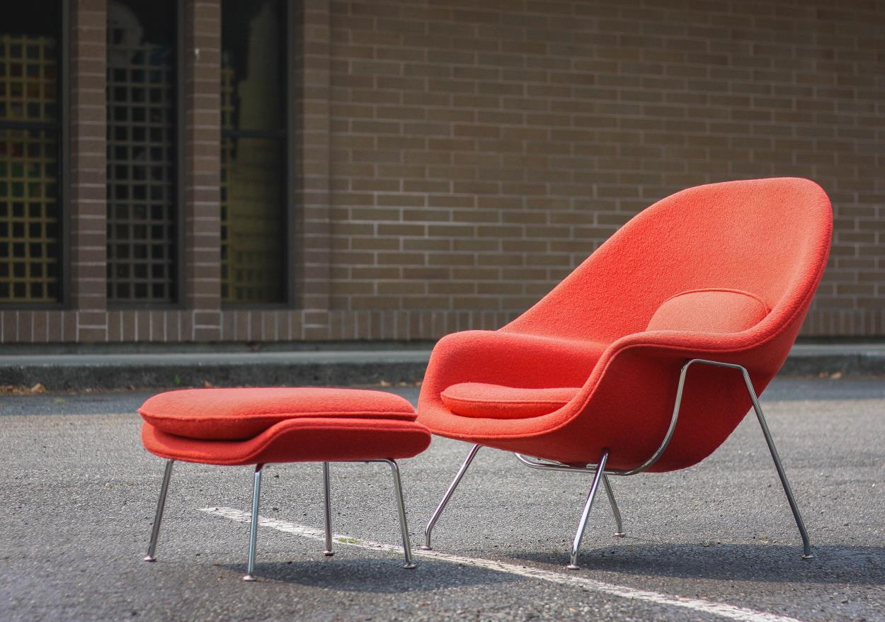 Ottoman can be placed upside down on chair seat to save floor space if needed.