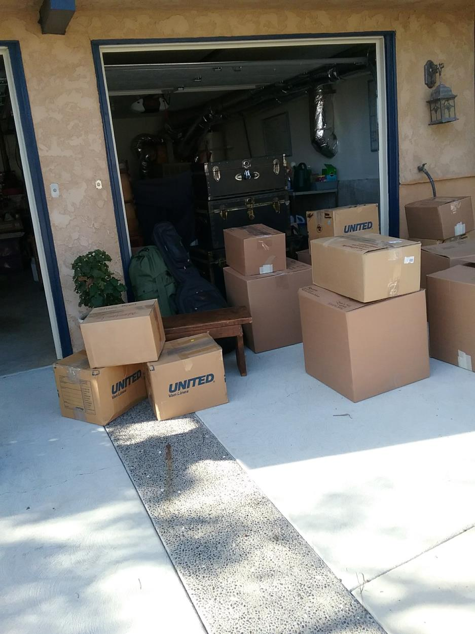 There is about 15 medium/large boxes, 40 inch flat screen TV, small desk and chair, 1 night stand, small microwave, 3 trunks, 1 large tool chest.