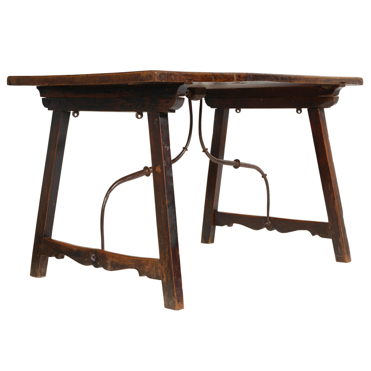 Table is collapsible by unscrewing iron supports underneath. Should flatten down to less than 10 inches high and then can be blanket wrapped.