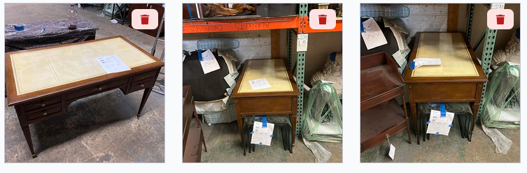 Pickup is an auction warehouse. There are 4 other small items which will be packed inside the dresser or desk as part of the shipment these items are: a stapler, a small flask, a small picture, and a small light fixture.