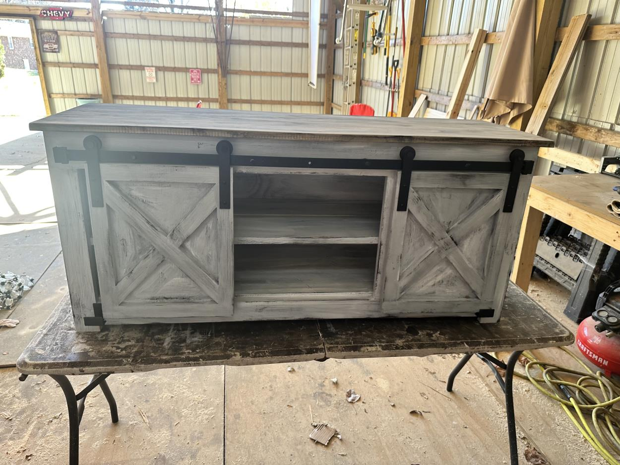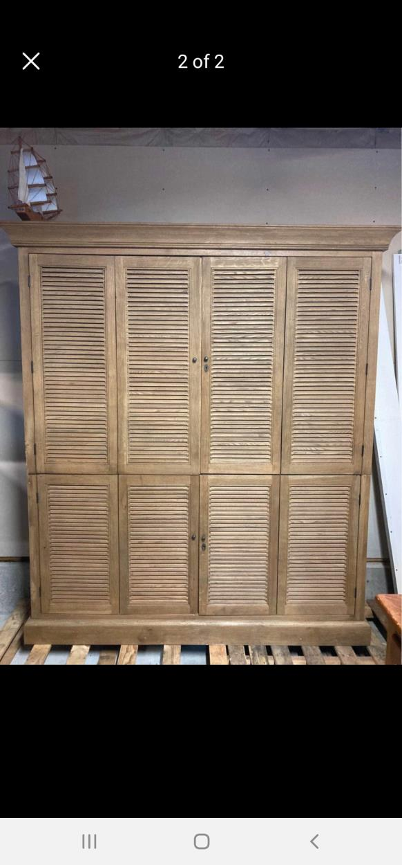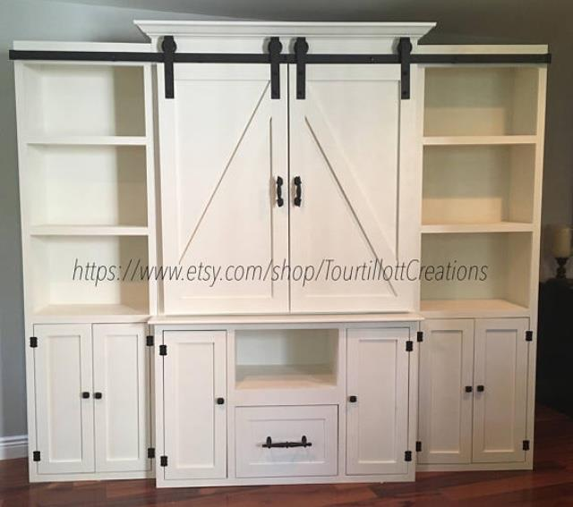 This unit will be in 4 pieces with a box of hardware and 2 barn doors. The pieces are 2 towers 25" wide 12" deep and 78" tall I lower base 50" wide 20" deep and 33" and an upper center 50" wide 12" deep and 57" tall. I will have shrink wrap on the pieces and would ask you place blankets over them for transport.