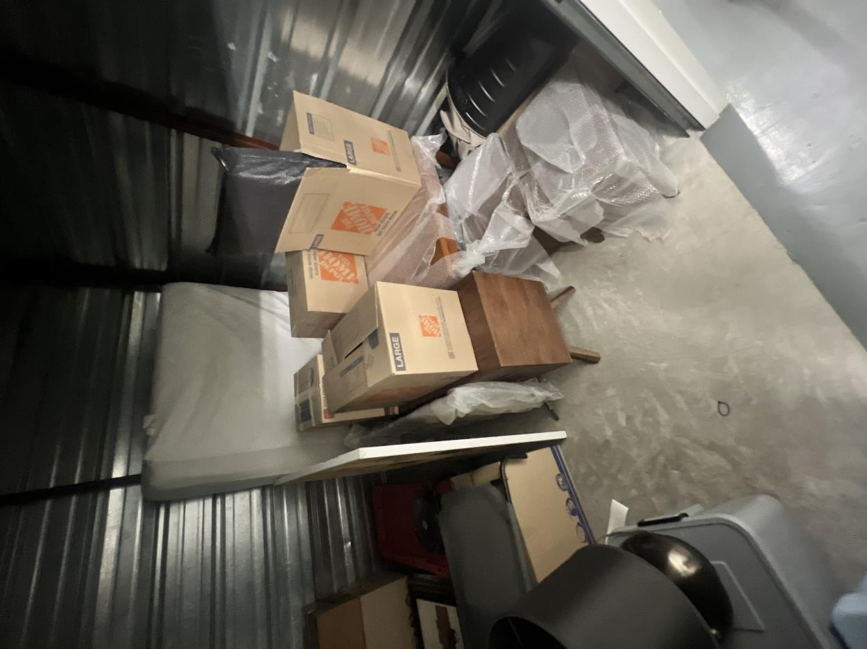 7x10 storage unit contains furniture and personal items that need to be moved to a home. large items are a queen mattress, disassembled dining table, and an entry way table/cabinet.The rest pictured is items like 2 lamps, boxes, etc.