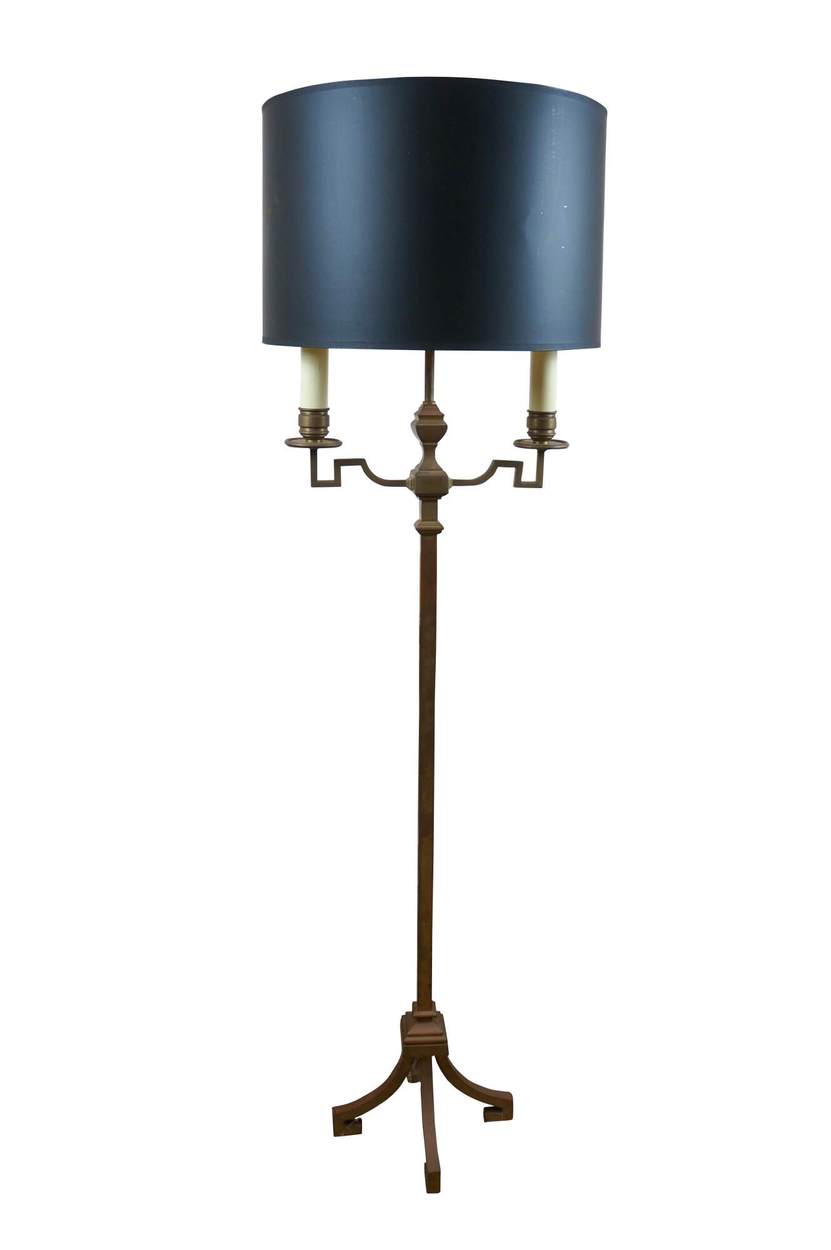 Wrought iron floor candelabra 66” tall 20”. Will be boxed in 2 large wardrobe moving boxes so package will be 24” x 24” x 66” tall, @ 30 lbs.