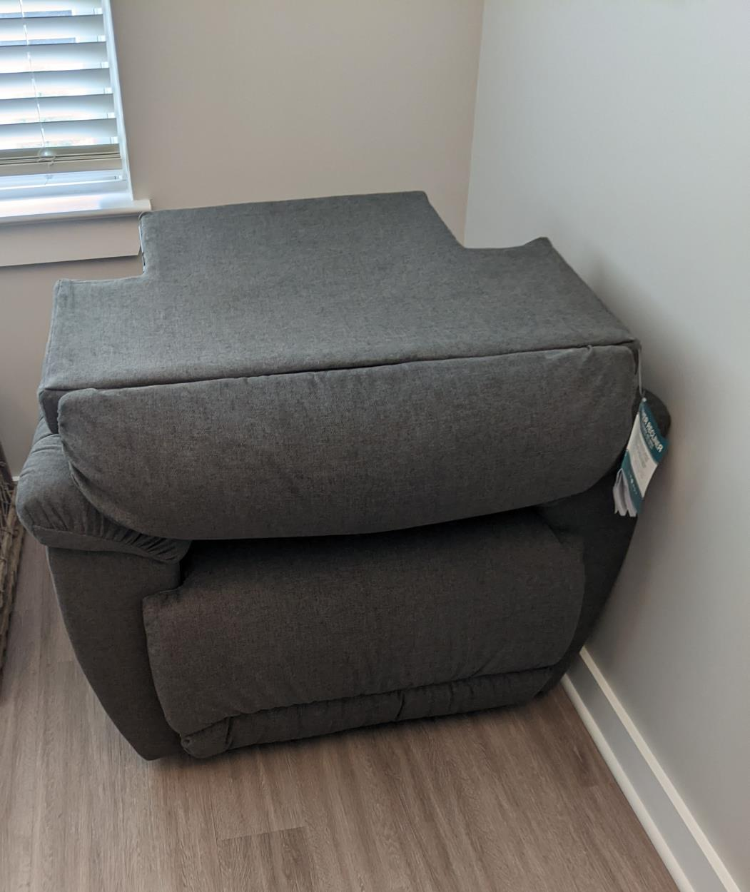 Ottoman can be stacked upside down on seat during transit for space efficiency. EZ loading right from my driveway on to your truck/van. No stairs.