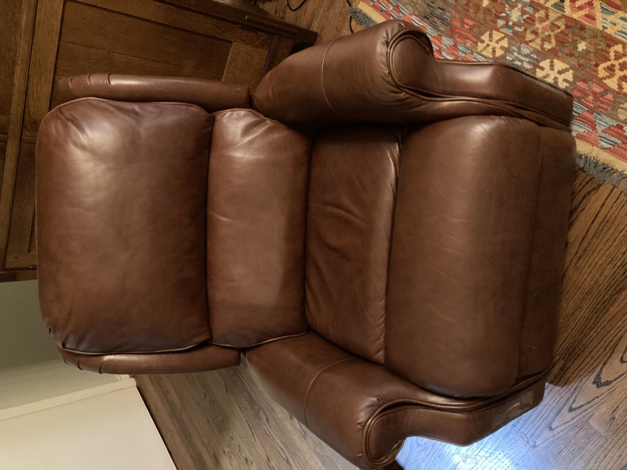 The leather Chair disassembles in two pieces, its easy to carry ( one strong person or two people )