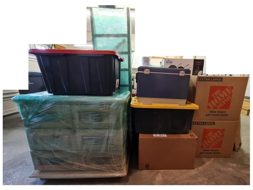 As pictured these items take up 8' x 5' of floor space. Items might be able to stack higher to take up less area. There are only 3 or 4 items heavy or awkward for one person, but we can meet you to load and unload, so that shouldn't be a problem. These will need to ship in a covered/enclosed truck. They can not be exposed to weather/rain. Thank you!