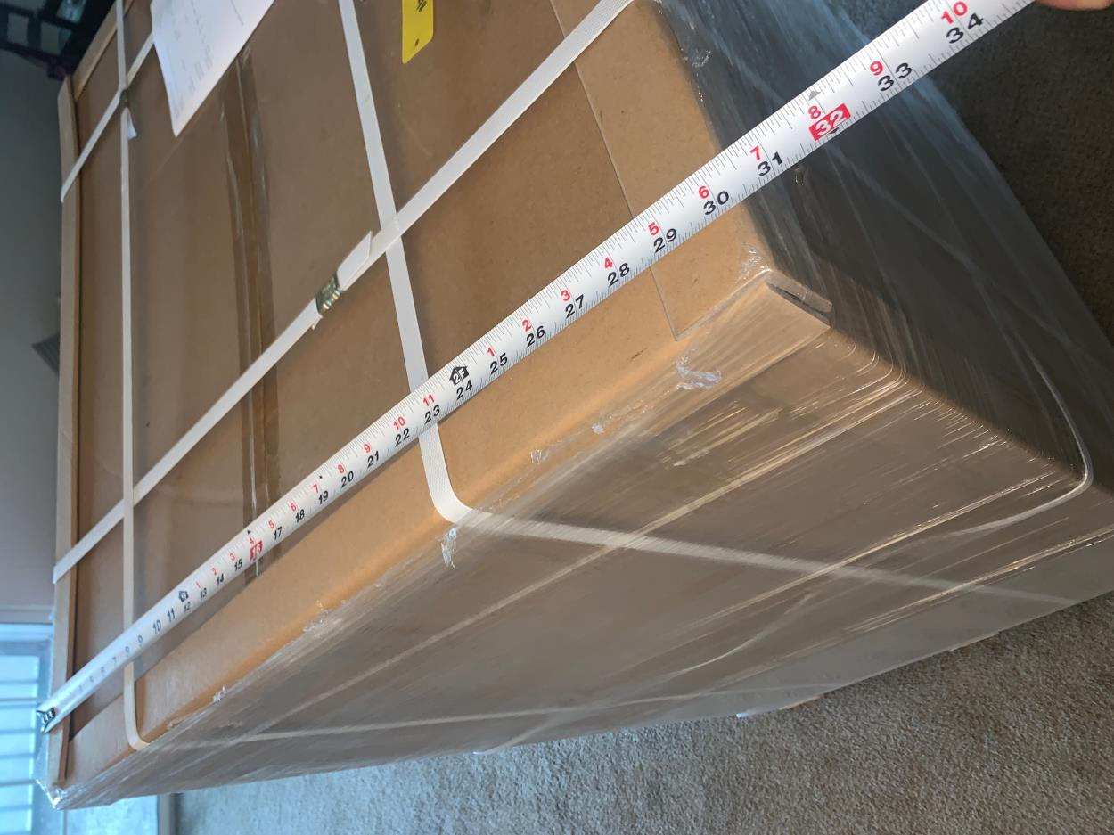 Already in cushioned and sealed box and on a crate, measures 30"x 35"x 50". Very easy to pick up and store. See pictures. I'm flexible with dates for pick up and delivery as long as reasonable.