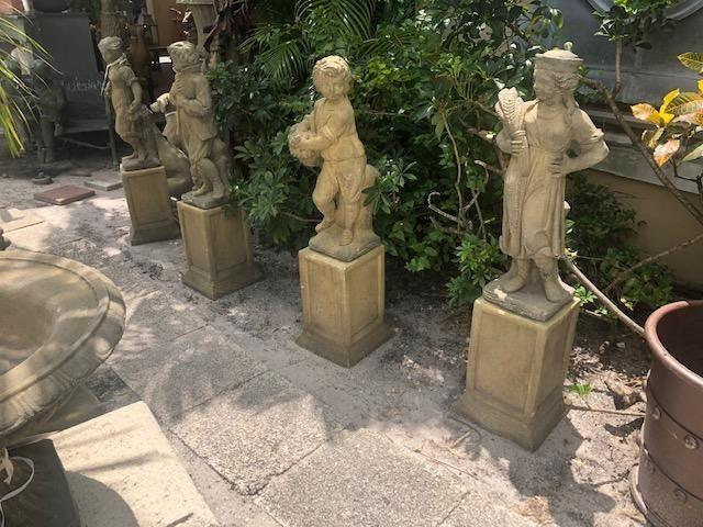 These are 4 garden statues they have a pedestal and a figure, each base is 50 lbs each figure is about 40 lbs.