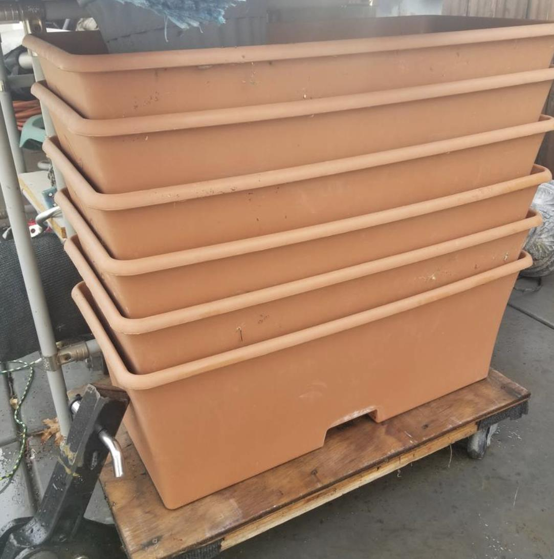 Photo shows an a example of how they stack. (They actually nest better than shown.) A stack of 8 measures 29”x27”x13”. And they are very light weight—5.8 pounds each. So they can easily ride on top of other things.