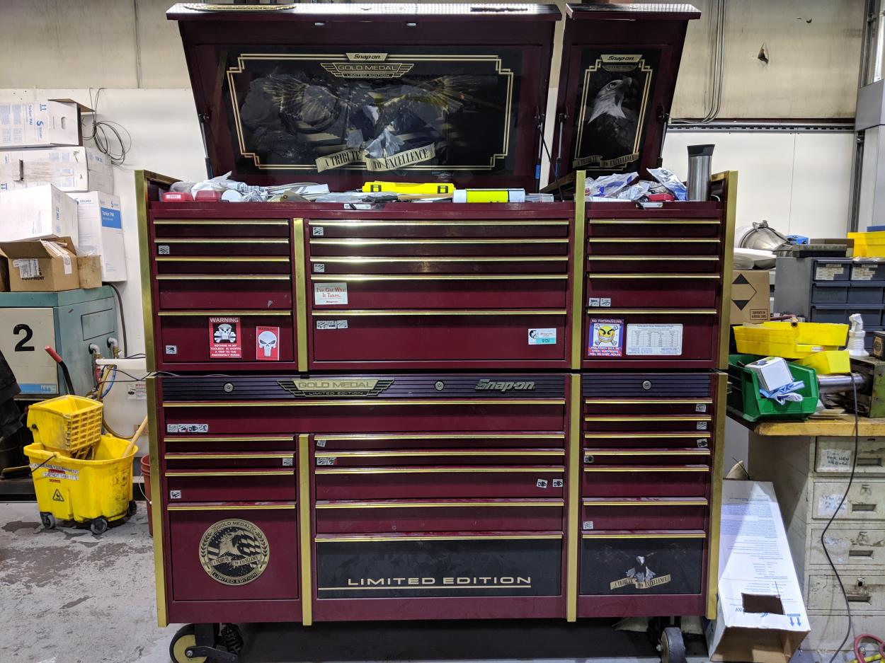 large toolbox on wheels. Will need to be strapped down, brakes will not hold it for transport issues.