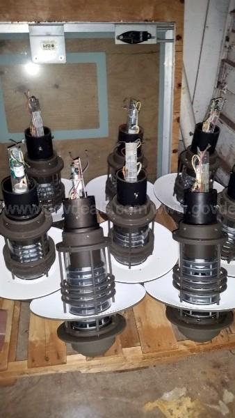 There are 9 lights. The pica showa few on a pallet to show size. Can easily be put in back of truck or trailer or van. About 20lbs each.