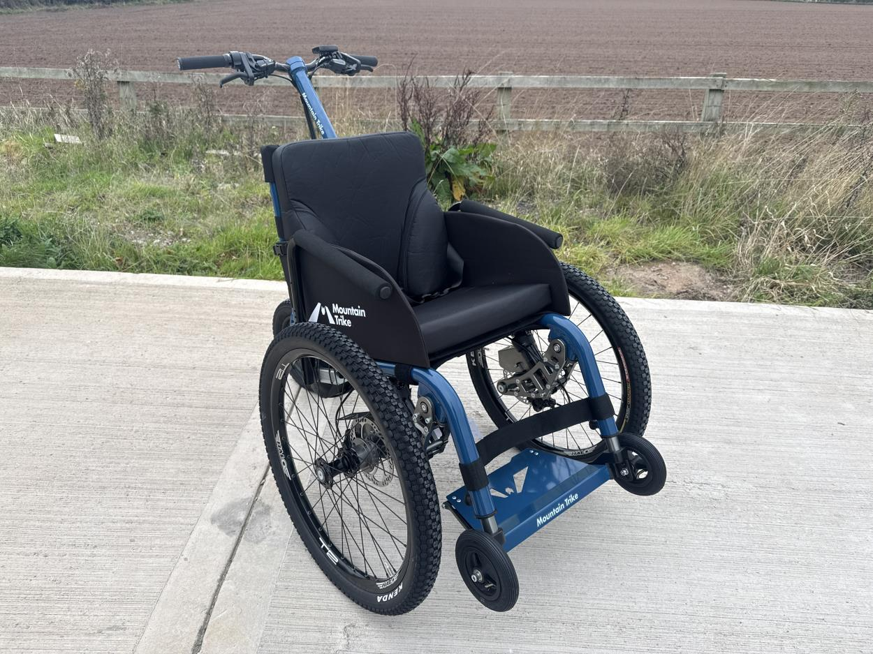 Handicap scooter breaks down into four pieces to fit in the trunk of a car. This scooter is only three pieces since it doesn’t have the battery. The second picture shows a black lollipop switch that freeze the wheels so you can roll it freely. It is a 20 year-old scooter that will own cost me $185.