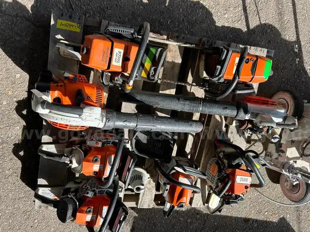Pile of 13 Stihl Trimmers, 4Blower 2 Pole Saw -- Stackable if stacked with care. Delivery to me is flexible as far as late night / early morning as i live on sight. PICKUP IS WEEK DAYS ONLY.