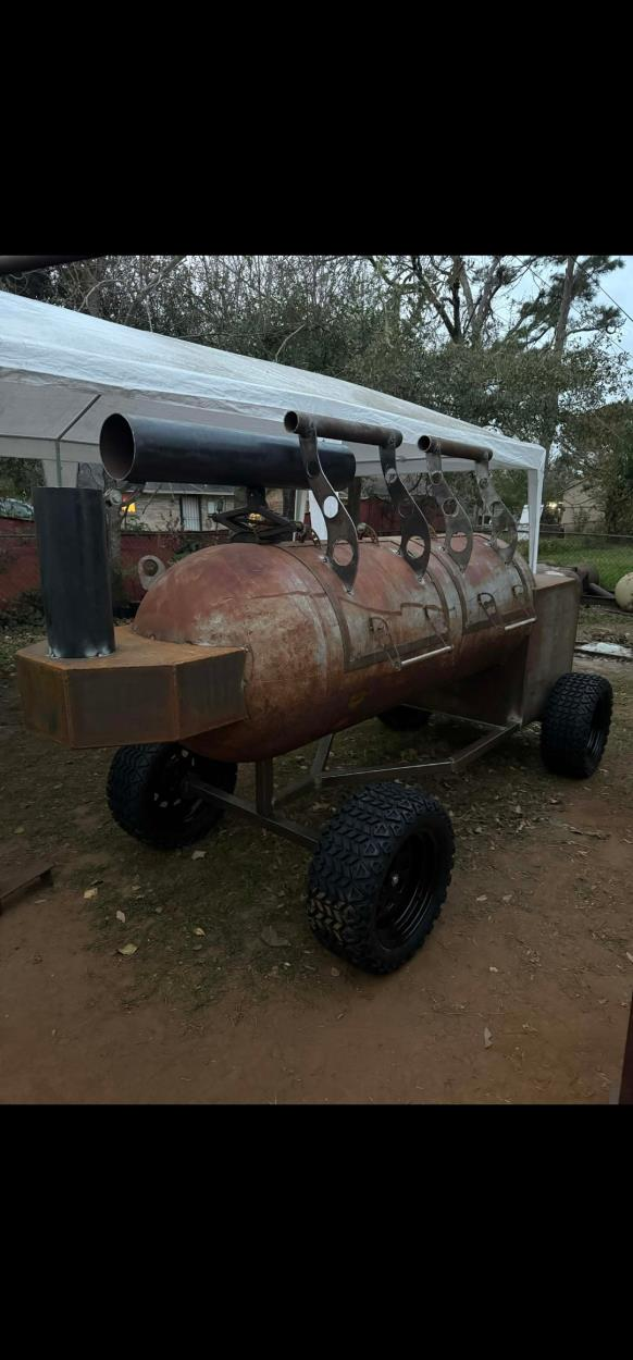 Has a pull handle, mounted on steering golf cart tires. May need a winch to put it on trailer.