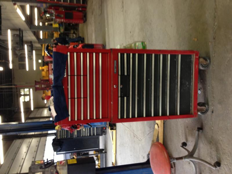 2 tool box's can be stacked . Bottom box has wheels, there are tools in both box's .