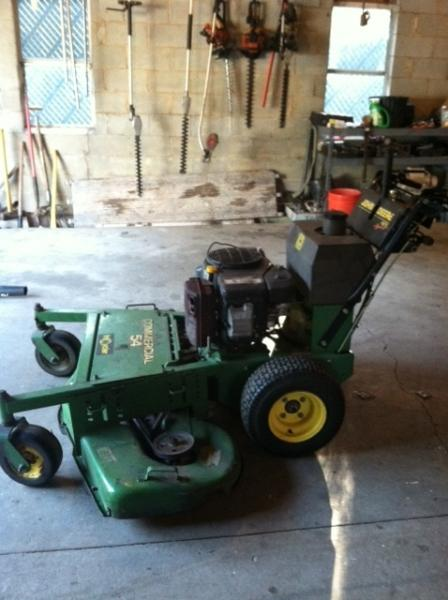 The machine being picked up is complete, but does not run. It will need to be pushed.