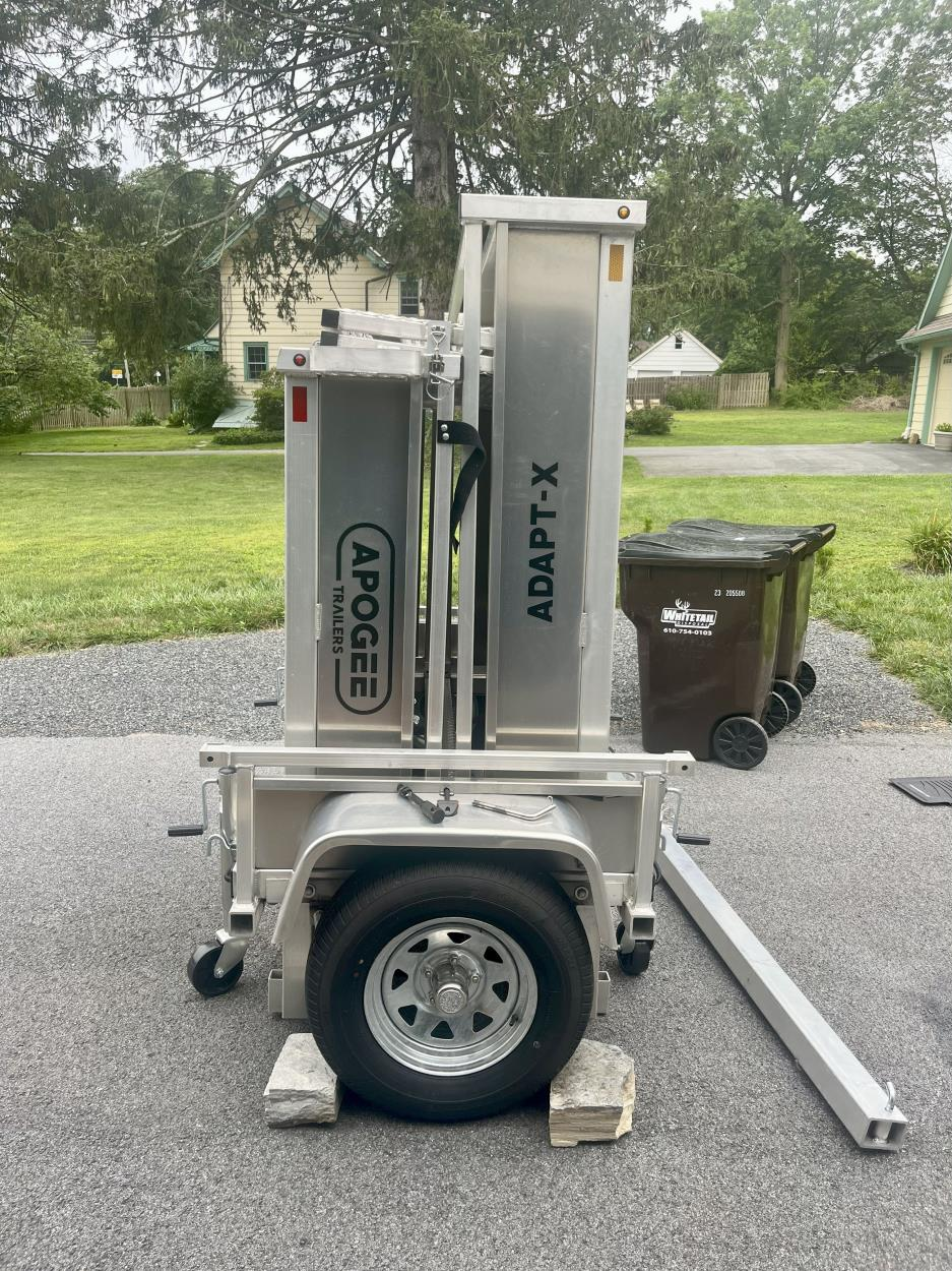 This is a foldable trailer that is on trailer wheeled trailer jacks. The trailer is easily movable by one person.