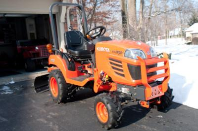 Running JD L7G tractor. The 60" deck could be removed and stood on side to reduce floor space requirements. Will fit in the rear of a 6.5' pickup box with deck removed.