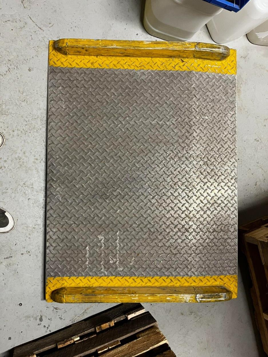 If you have a delivery or are passing by within an hour of union springs ny I will meet you and pick up the dock plate to save you some miles if you like. Also I listed as 100 lbs, That is my best guess I'm not sure that is the actual weight.