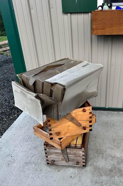 No bees. Just beekeeping boxes and frames.