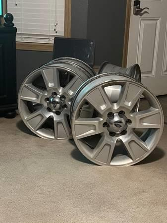 these are 4 separate rims. Easy to haul & could fit in the back of a truck / vehicle w/founded down seats. Clean NO TIRES.