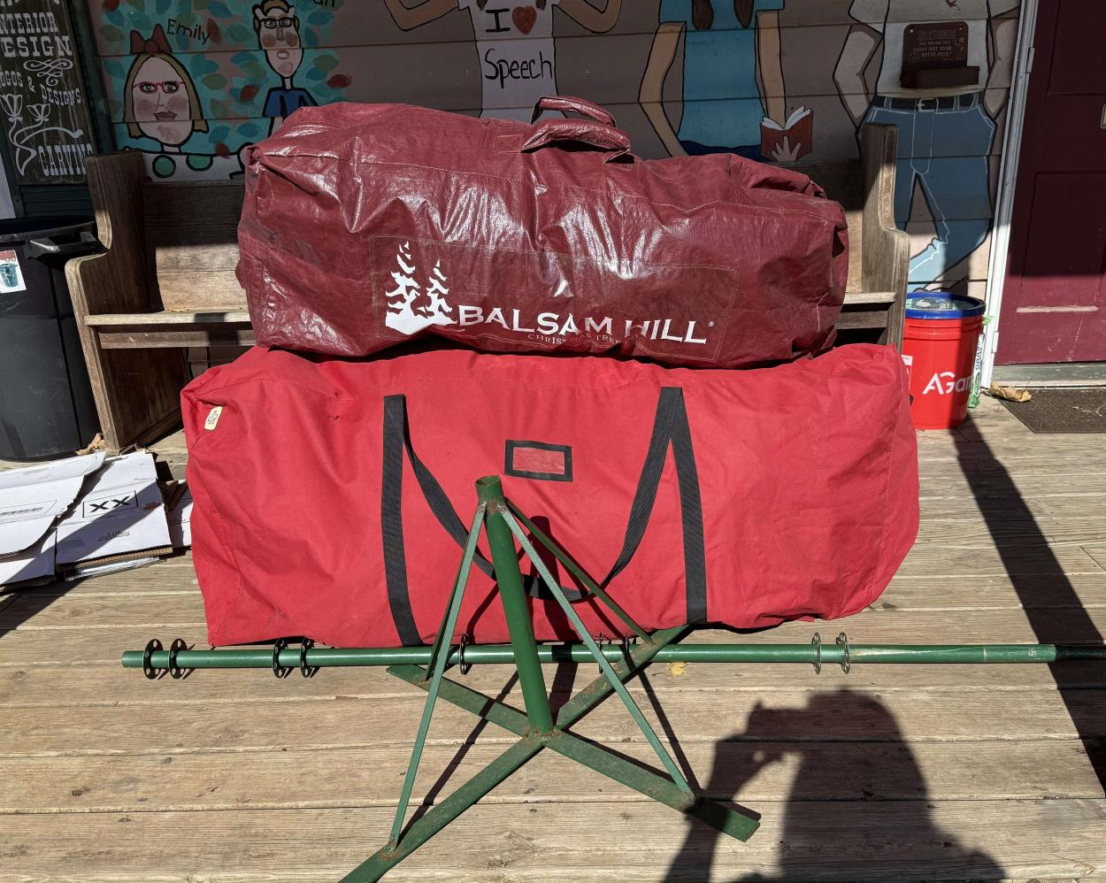 The first photo shows the components of the tree, including the stand, the pole, the top portion in a bag, and the bottom portion in a bag. the second photo shows the tree assembled, just so that you know what you are transporting. It is something that cannot get wet, so a water proof tarp or an inside enclosure will be necessary.