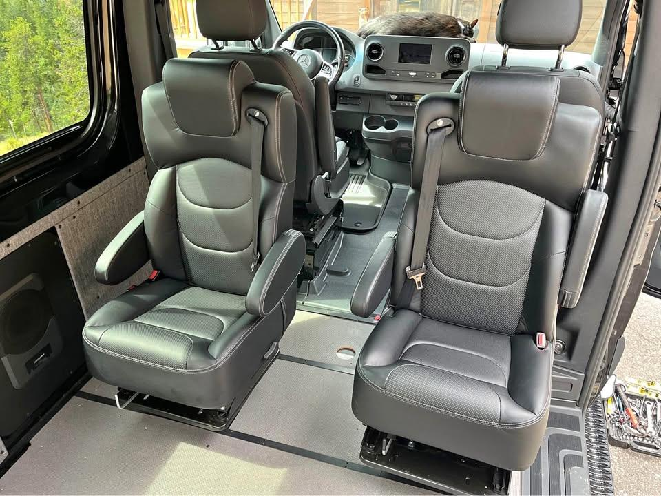 2 Captains chairs, these are already uninstalled and ready to transport. Easily moved individually.