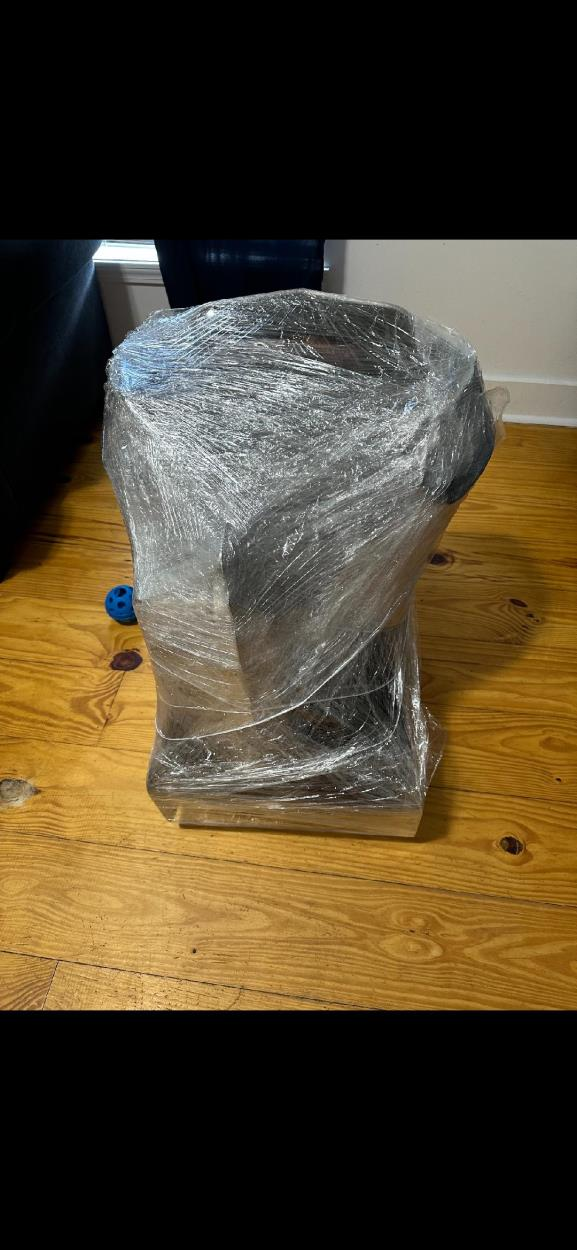 Aluminum circle track race car seat is wrapped with clear shrink wrap. Needs to be kept dry during transport, and protected with a shipping blanket.
