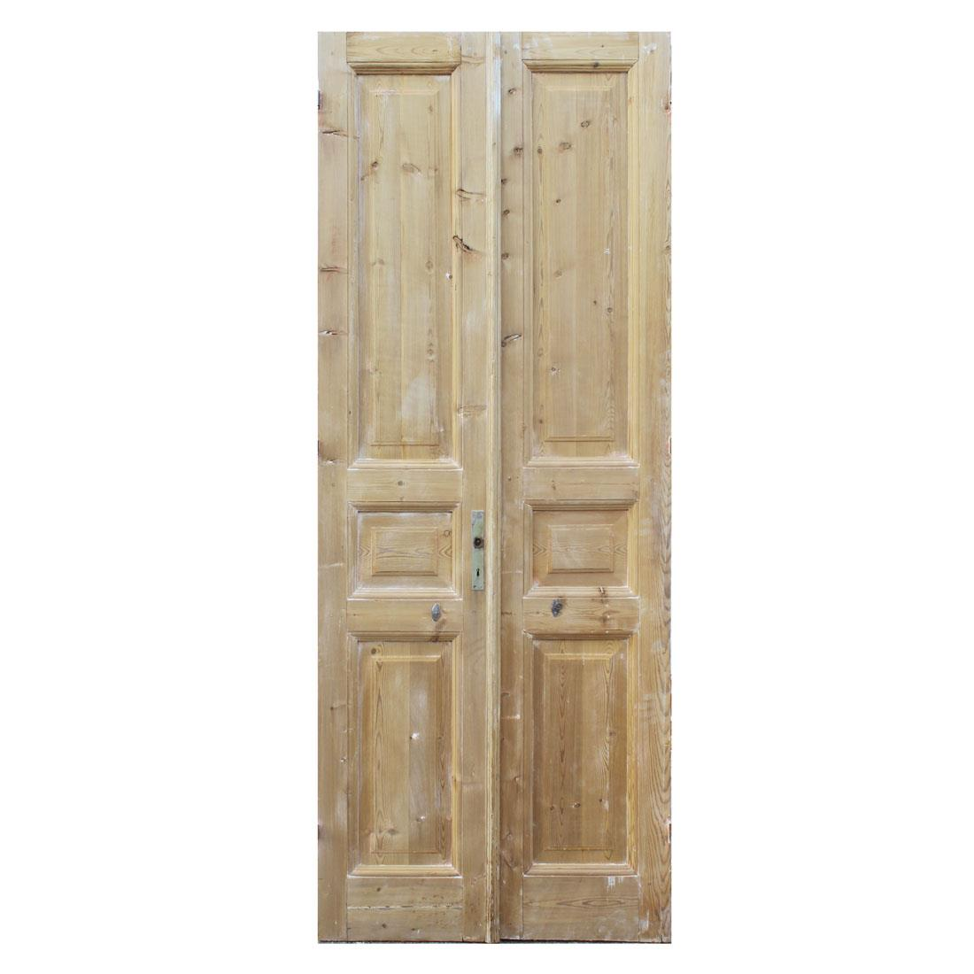 Solid wooden door pair. Doors do separate and are stackable for easier transportation. Each door measures approx. 18" wide and 95" tall.