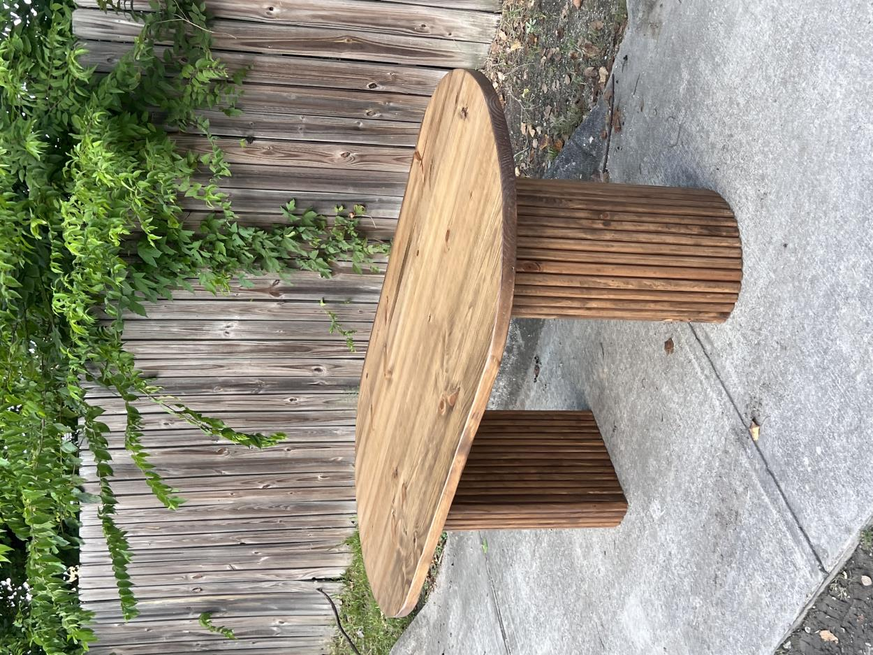 Round- 18 inches height, 36 inches diameter. Around 100 pounds