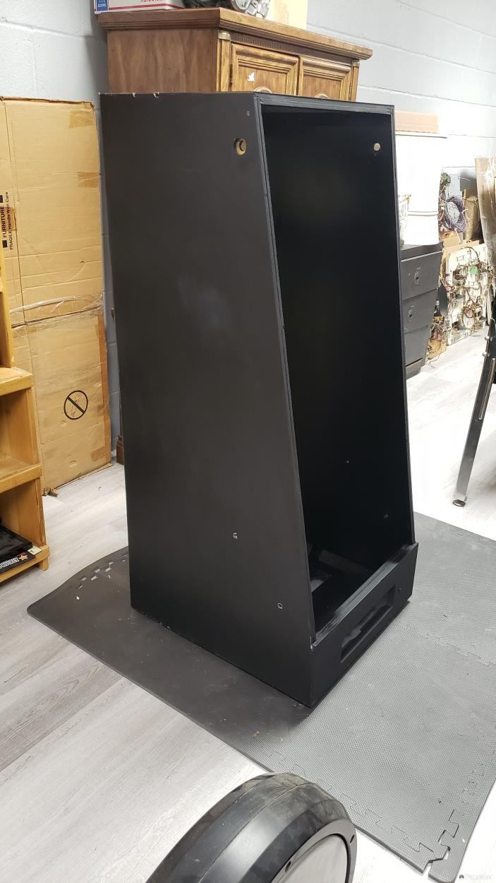 The cabinet is fairly light weight. I will have it wrapped and ready the day of pickup and help load it. Enclosed transport standing up only please.