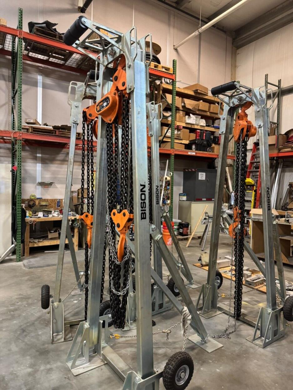This is a metal lifting system. There are 4 separate pieces that each weigh about 500 lbs. There is a loading dock onsite but the items will not be palletized. You will need to pick it up as shown in the pic.