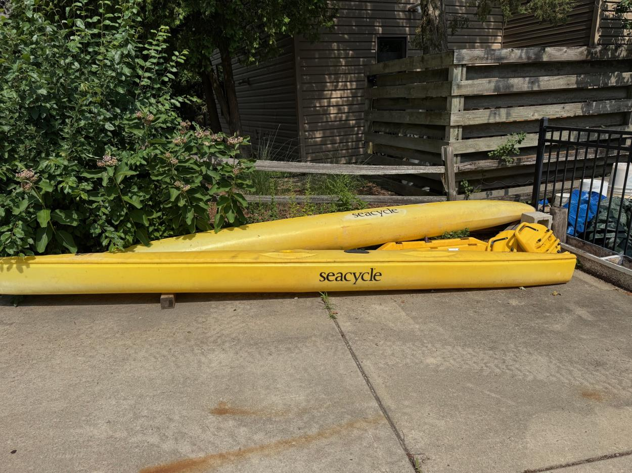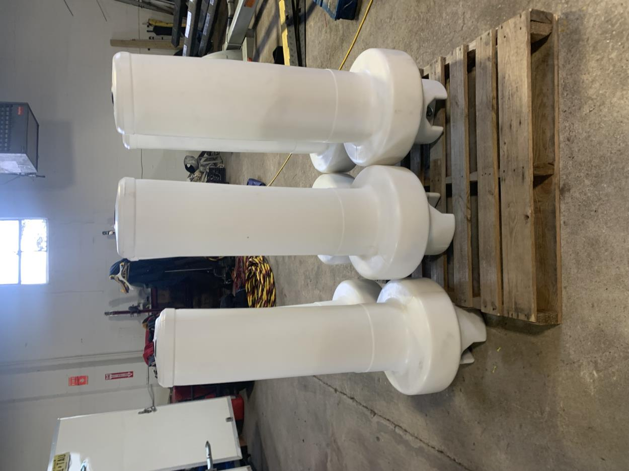 6 plastic Sur-mark buoys. These are an odd size but not heavy and easy to move around. Easy for one person to move around. Can be strapped to a trailer or truck bed.