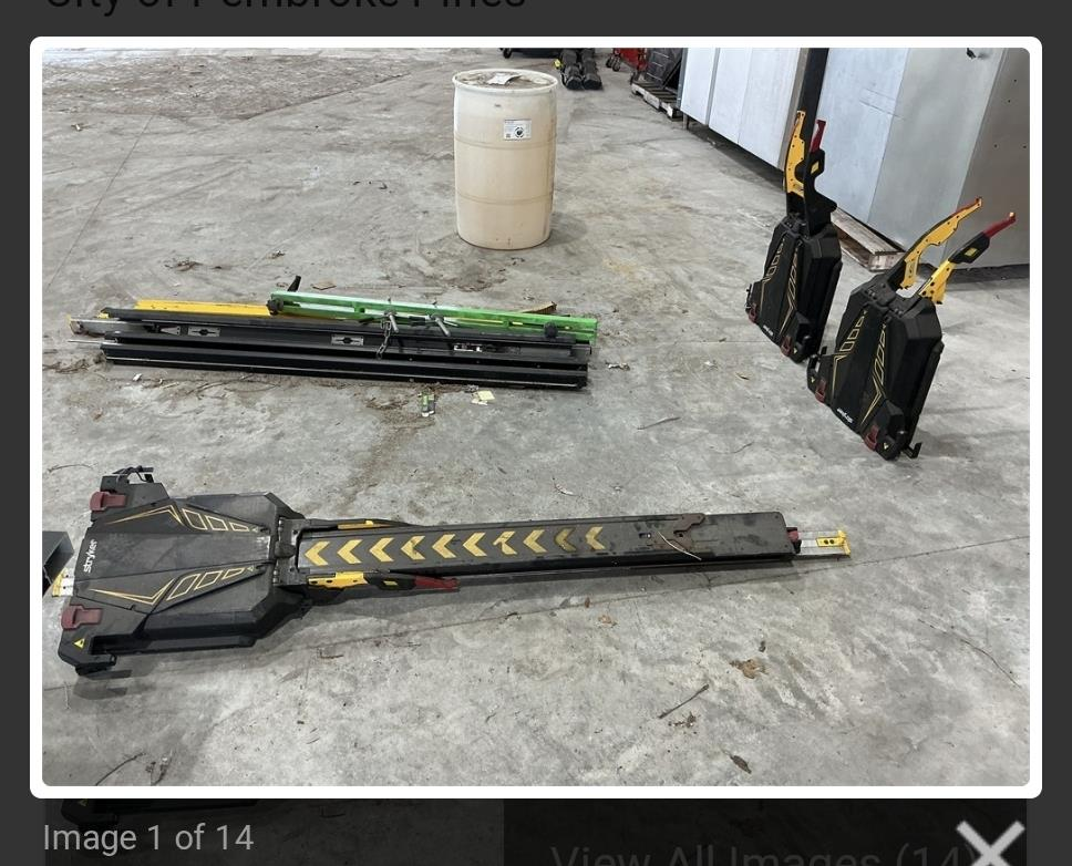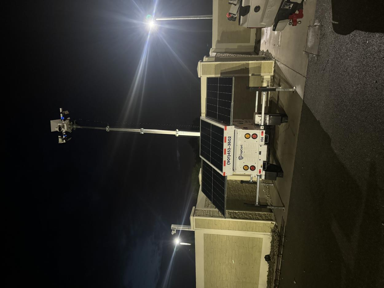 Trailer is towable. Unit must be secured for transport. Lower mast and strap down. Slide in both solar panels. Roughly 2900 lbs. Requires a 7pin to 7 pin trailer extension cable for lights. Has surge brakes. Tower must be lowered for transport. Requires 1 ratchet strap and a socket set to lift up out riggers.