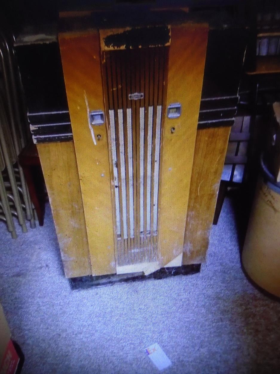 Please be take care with loose veneer on bottom front, blanket wrap in place. Radio is located in a church. Contact is the Priest.