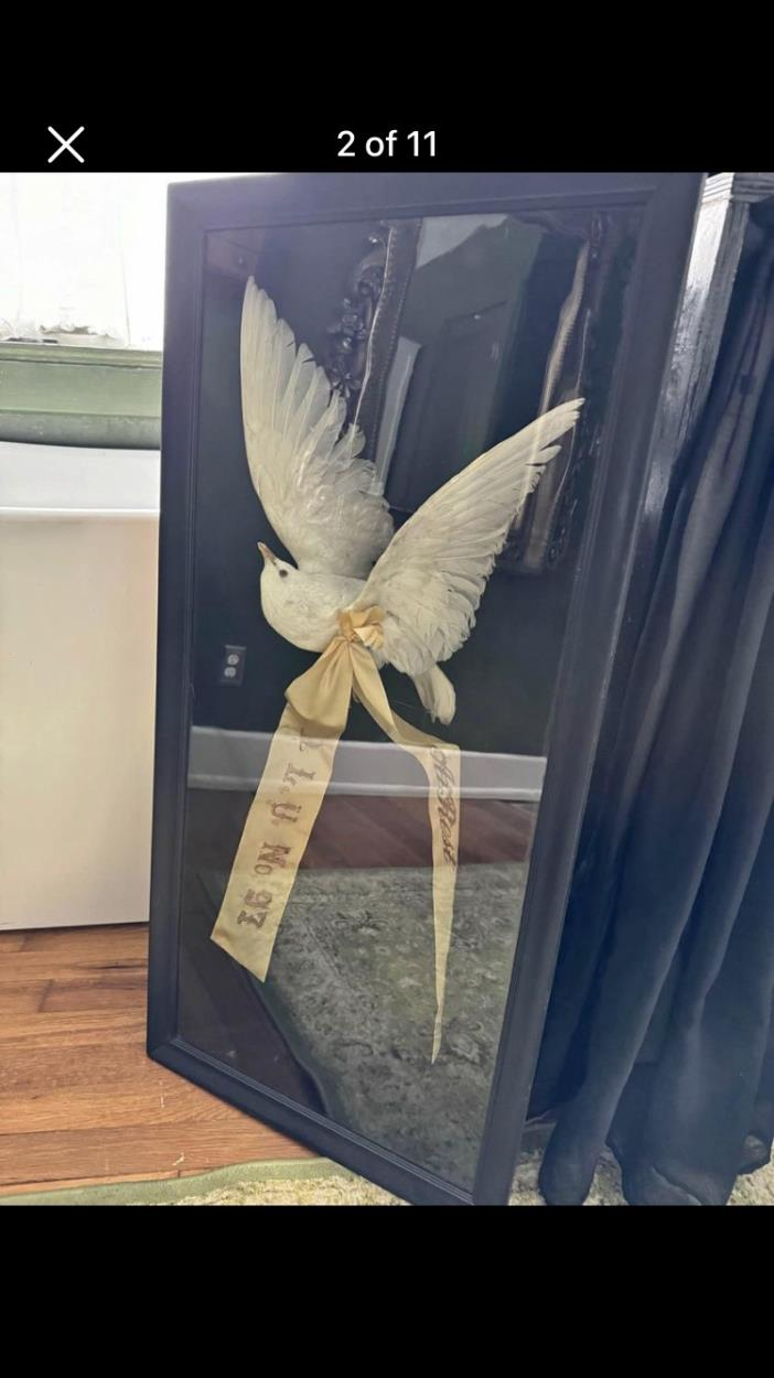 This an encased Victorian taxidermy bird with a glass front. It would need to be wrapped in a blanket and laid flat on it's back for the trip. (Ive had them transported standing up before and the vibrations eventually break the display off inside.)
