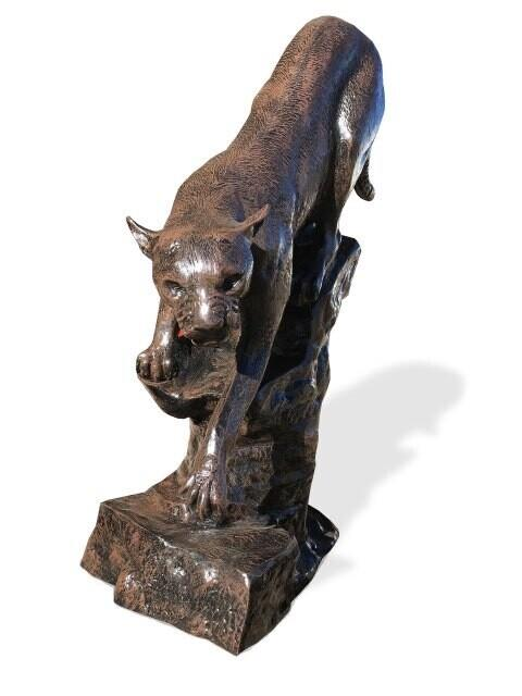 Lot 494: Large antique framed sporting print: a colorful circa 1940’s-50’s print of two fishermen in a canoe-lake scene with a big bass on the line; signed @lower right ‘Don Buhrmann;’ under glass in a wooden molding frame; 36” T X 51 ¾” W (some fading/bleed