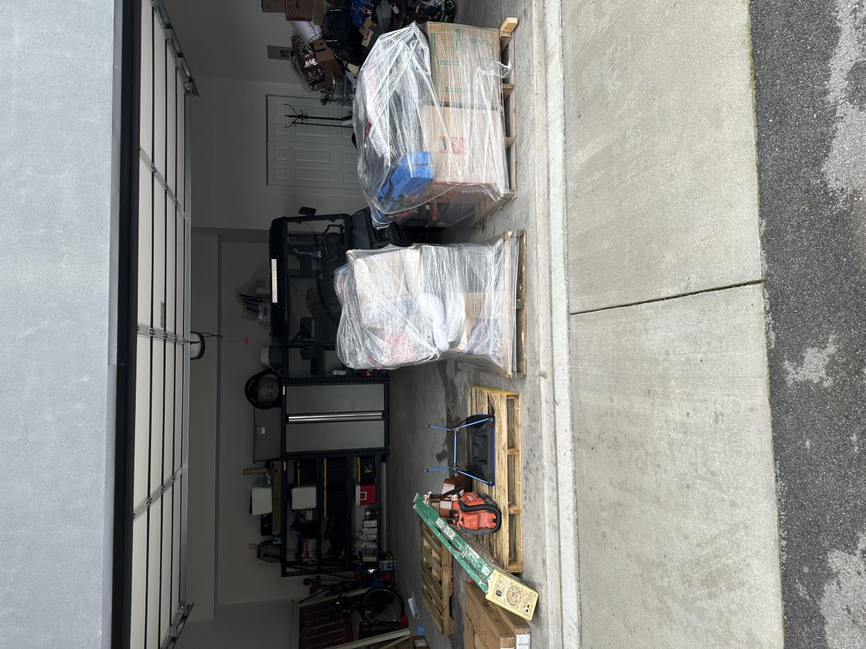 2 pallets of tools, clothes, misc items plus 4 loose items shown in picture (to the left of the pallets)