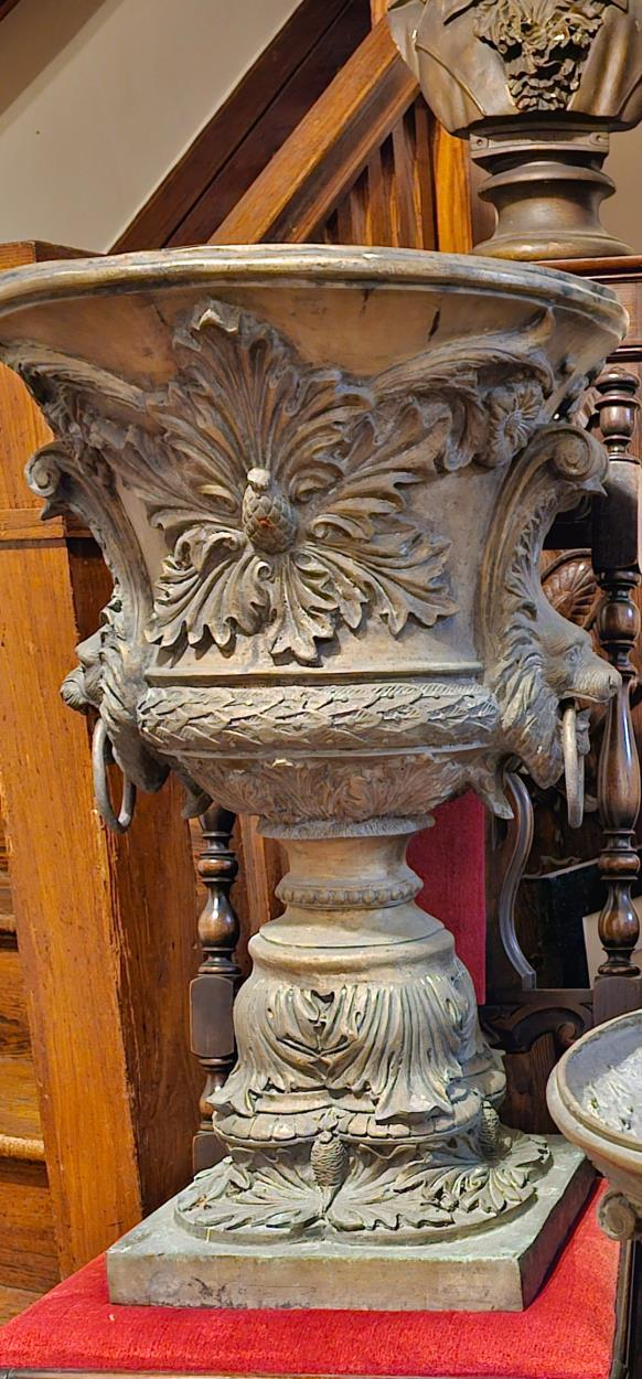 Two large bronze urns weighing about 30 pounds a piece. These are extremely old