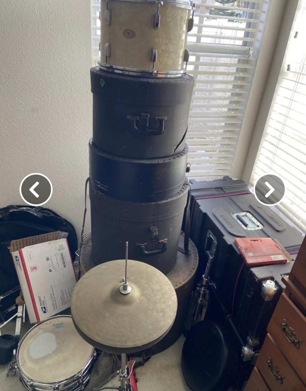 Just small jazz drum set (musical instrument) w cymbals they are not heavy