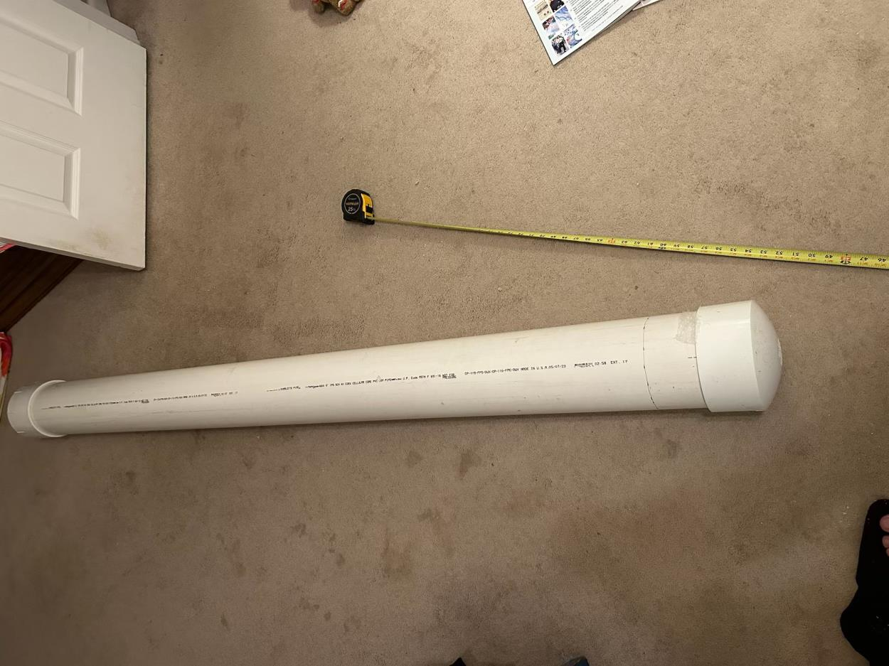 Item in PVC pipe is a fragile wood walking stick.