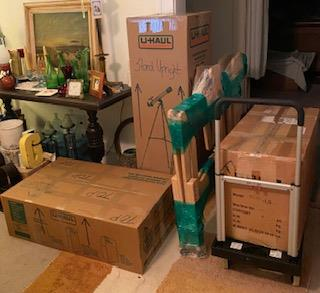 Missing one box in picture but 6 clear totes and one box nothing fragile or combustible (clothes and shoes and one stand mixer)