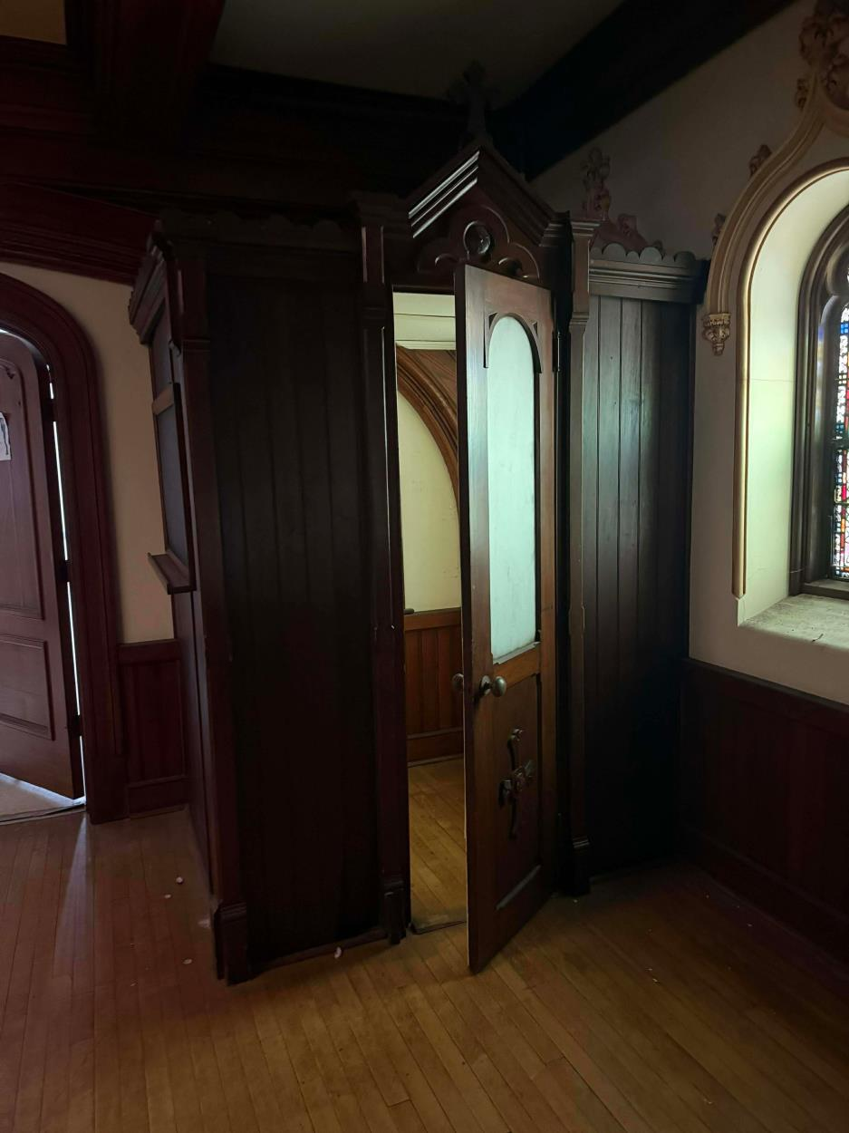 This is a confessional booth. It will be disassembled into separate panels for transport.
