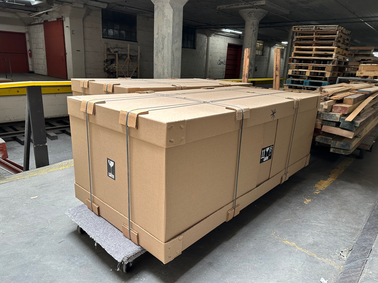 Desktop can either be placed flat, or on it’s long front edge and strapped. I will provide foam under that front edge to protect from bumps and damage