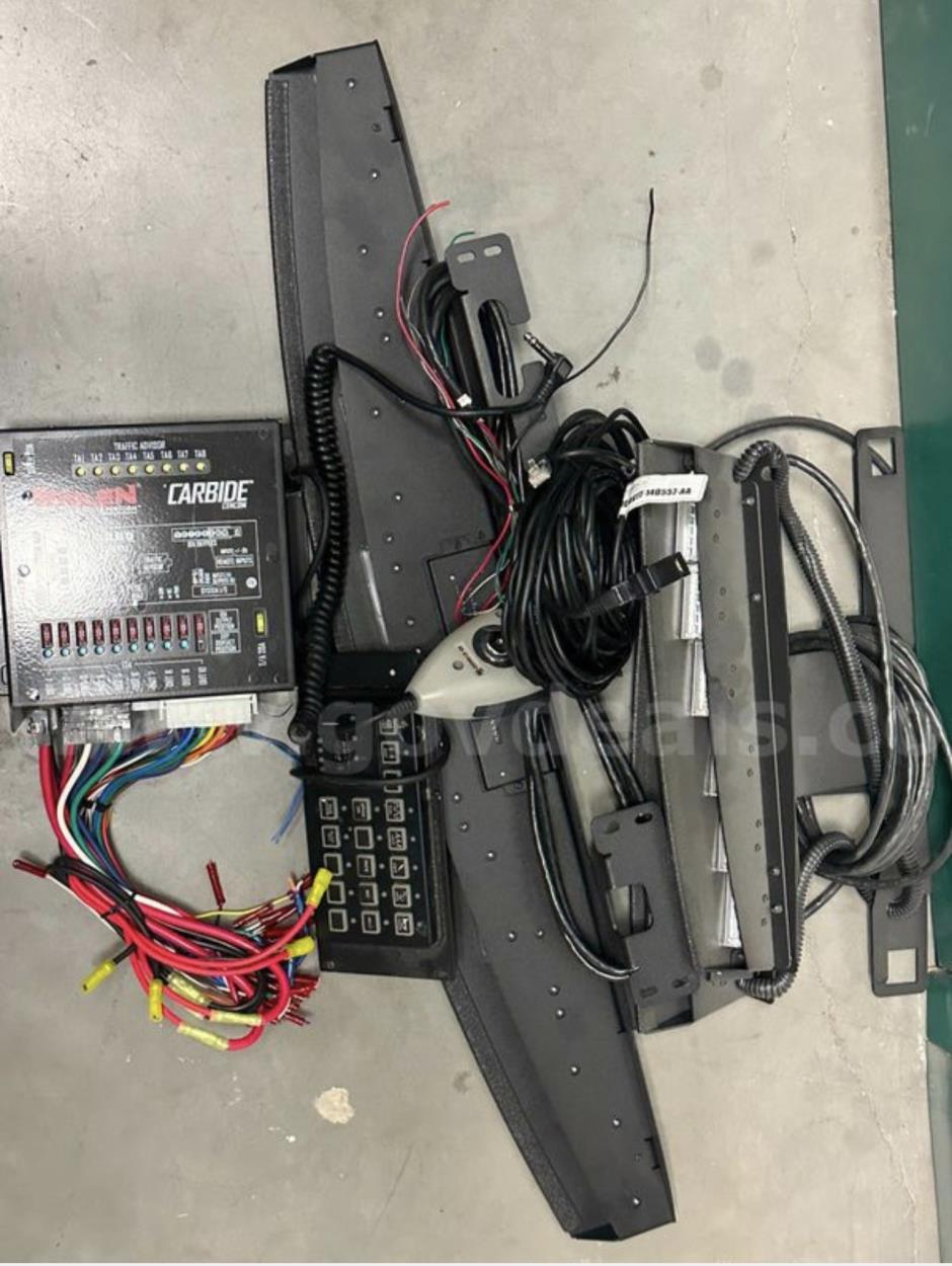 TWO DIFFERENT SETS OF EMERGENCY LIGHTS. THEY HAVE TO BE PICKED UP IN A POLICE STATION. AND DROPPED OFF IN A MOVING COMPANY.