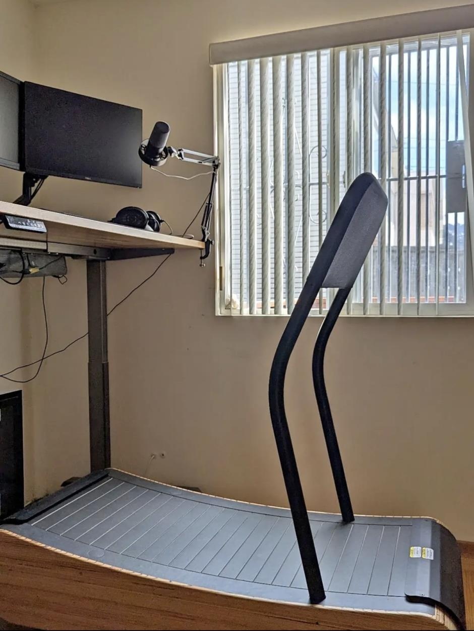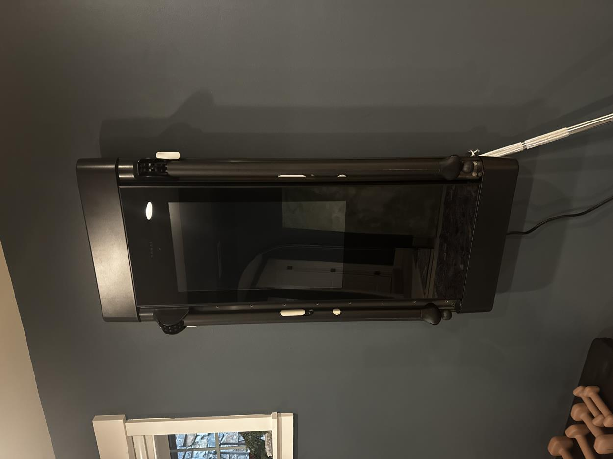 Treadmill can be laid on its side (wooden flat part) if makes transport down stairs easier or helps with loading/storage in truck/van.